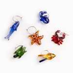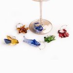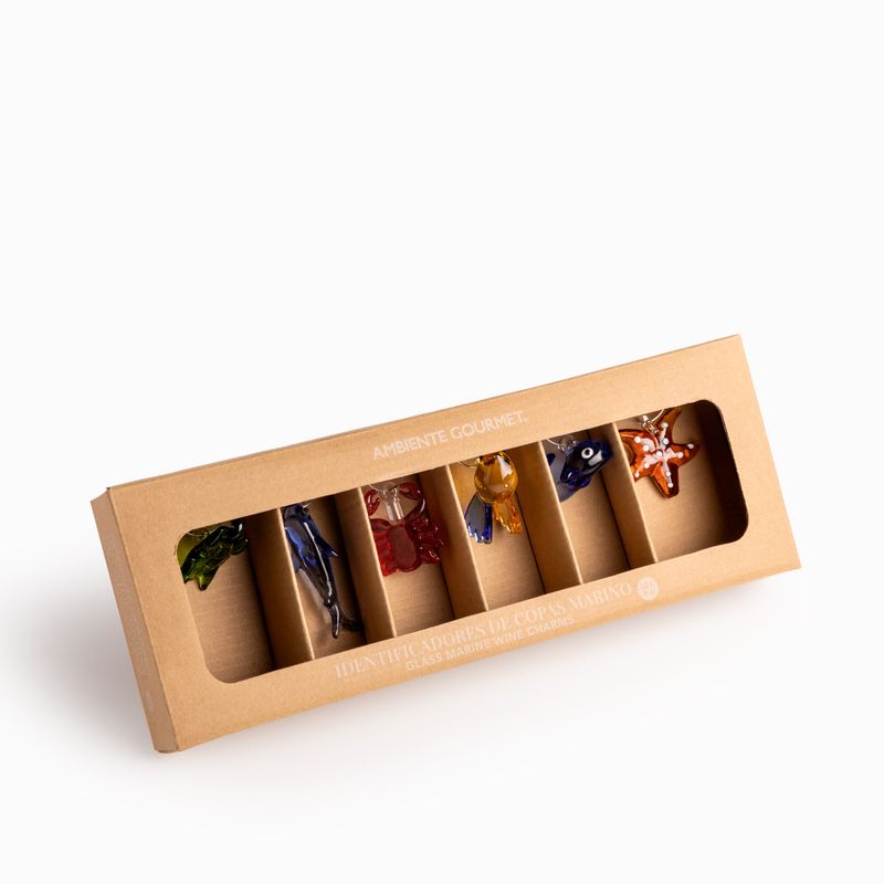 El set incluye 6 figuras miniatura inspiradas en la vida marina (como estrellas de mar, peces y crustáceos), elaboradas con un acabado multicolor vibrante que cautivará a tus invitados. Fabricados en vidrio borosilicato, un material premium reconocido por su ligereza y durabilidad, ideal para piezas de cristalería fina. Olvida la confusión de copas en tus reuniones; estos identificadores permiten que cada invitado reconozca su bebida de forma sencilla y sofisticada. Cada figura cuenta con un aro metálico delgado diseñado para abrazar el tallo de la copa sin rayar el cristal.