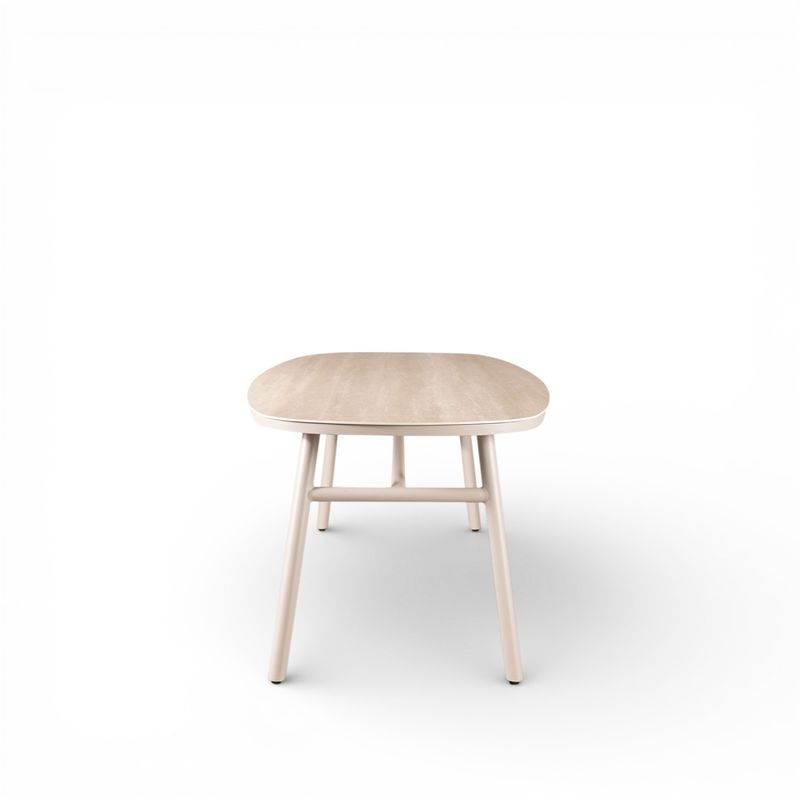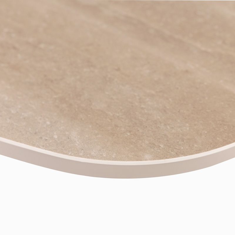 Su meson está fabricado en piedra sinterizada, un material de última generación extremadamente resistente a rayaduras, altas temperaturas y manchas, con una estética natural de lujo. Con un largo de 220 cm, es la pieza perfecta para organizar grandes banquetes familiares o reuniones sociales en exteriores. La base de aluminio garantiza una larga vida útil, siendo ligera para su tamaño, pero totalmente resistente a la corrosión en climas húmedos. Su tonalidad beige aporta luminosidad y una elegancia neutra que se integra sin esfuerzo en terrazas modernas o jardines de estilo mediterráneo.