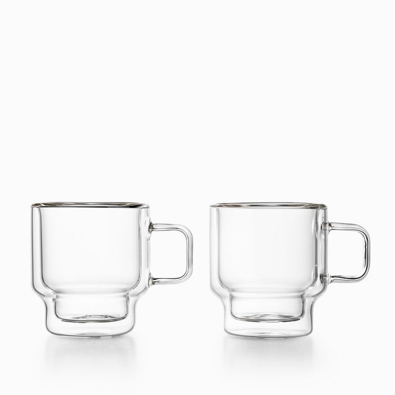 El mug doble pared se presenta en un conveniente set de 2 unidades, ideal para compartir un espresso, un té corto o un postre individual en pareja. Con una capacidad de 100 ml por mug, es el formato perfecto para preparaciones concentradas que requieren mantener su temperatura ideal desde el primer sorbo.