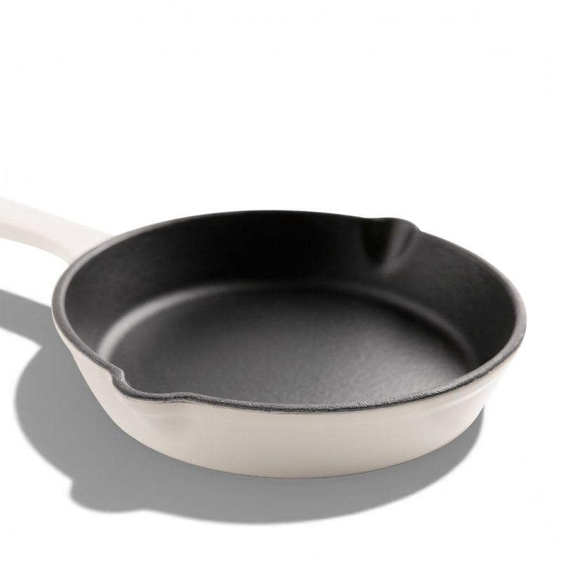 Rendimiento térmico profesional: fabricado en hierro fundido, este sartén ofrece una distribución de calor uniforme y una retención de temperatura inigualable. Es la herramienta perfecta para sellar carnes, preparar huevos perfectos, hornear postres individuales o servir entradas calientes (400ml). Su impecable acabado en color blanco lo convierte en una pieza decorativa que permite servir tus preparaciones directamente, manteniendo la comida caliente durante toda la cena.