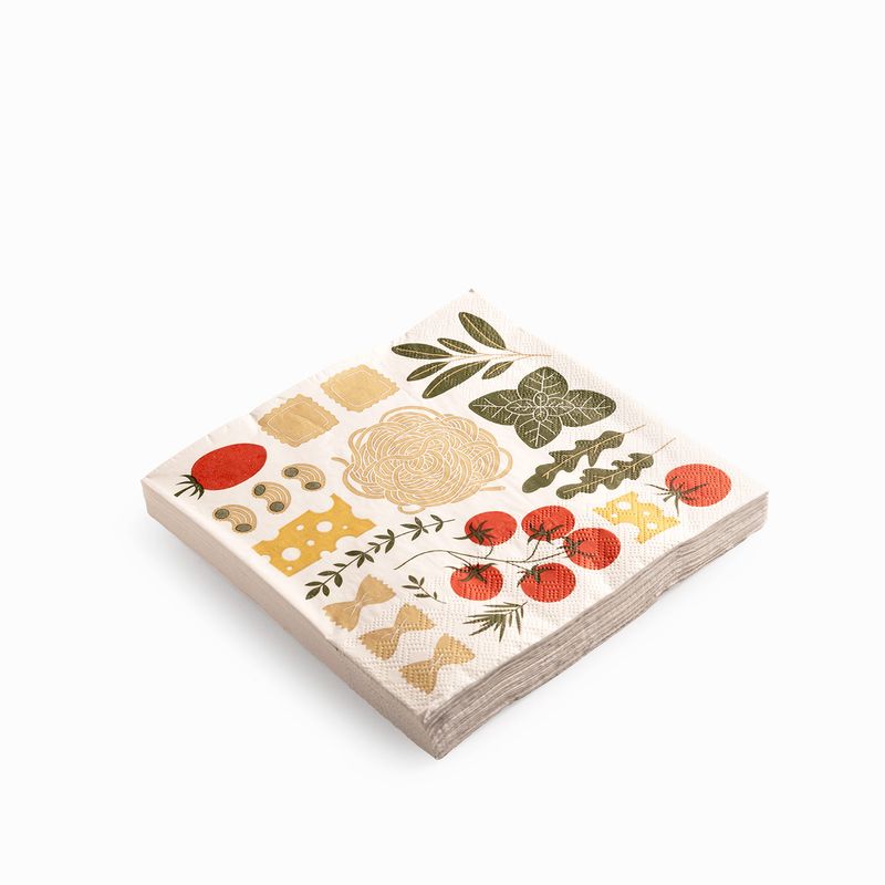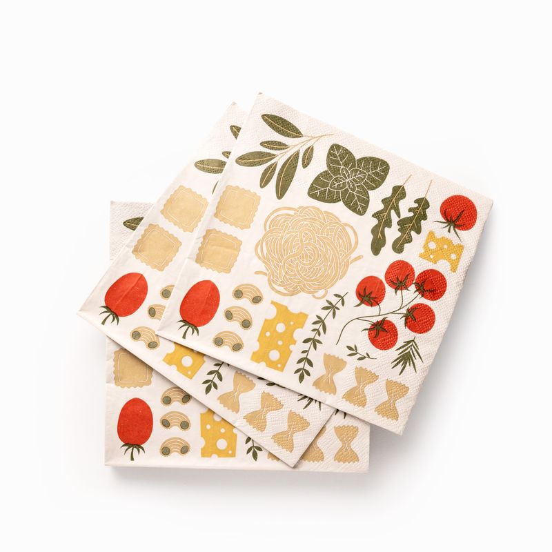 Es la solución ideal para quien busca papelería de mesa con diseño, con colores alegres y una temática original que invita a la conversación. Para anfitriones que aman los detalles temáticos y buscan sorprender a sus invitados con elementos visuales únicos. El paquete de servilletas Pasta es la elección del comprador creativo que busca color, practicidad y un diseño inspirado en la naturaleza.